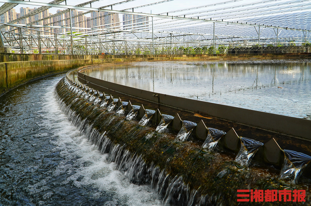 三湘都市報記者在現(xiàn)場看到,巨大的圓形水池被分成了內(nèi)外兩環(huán),外環(huán)是夾雜了活性污泥的水體,內(nèi)環(huán)則是向外涌出的一股股清澈水體,內(nèi)環(huán)表面還有一個緩緩轉(zhuǎn)動著的刮吸泥機,協(xié)助排除失去了活性的污泥。